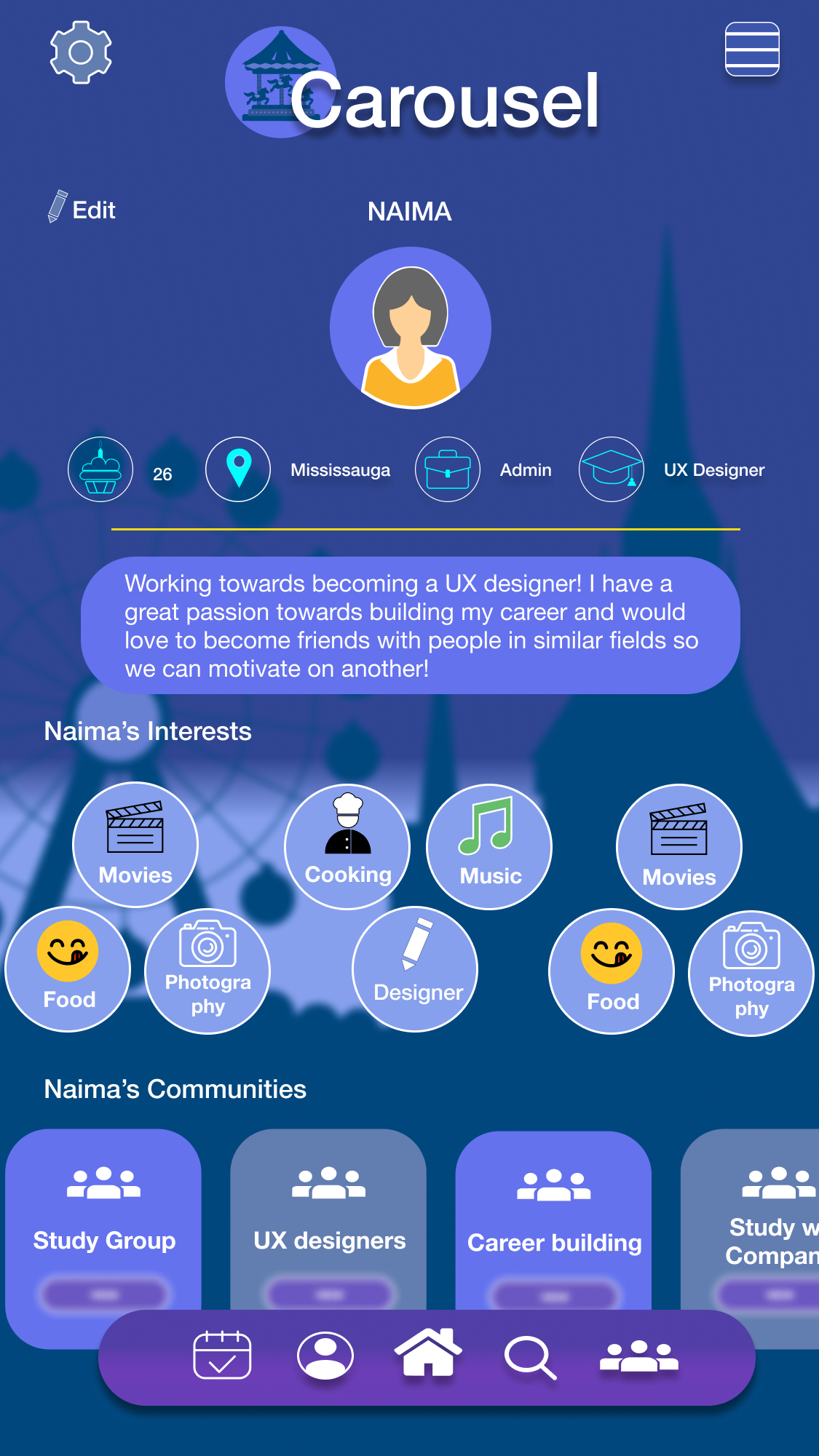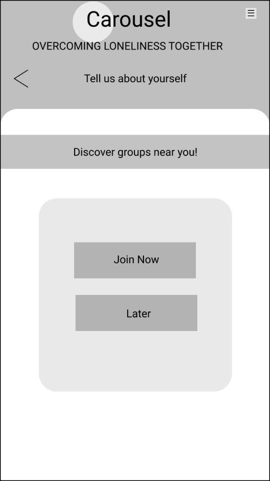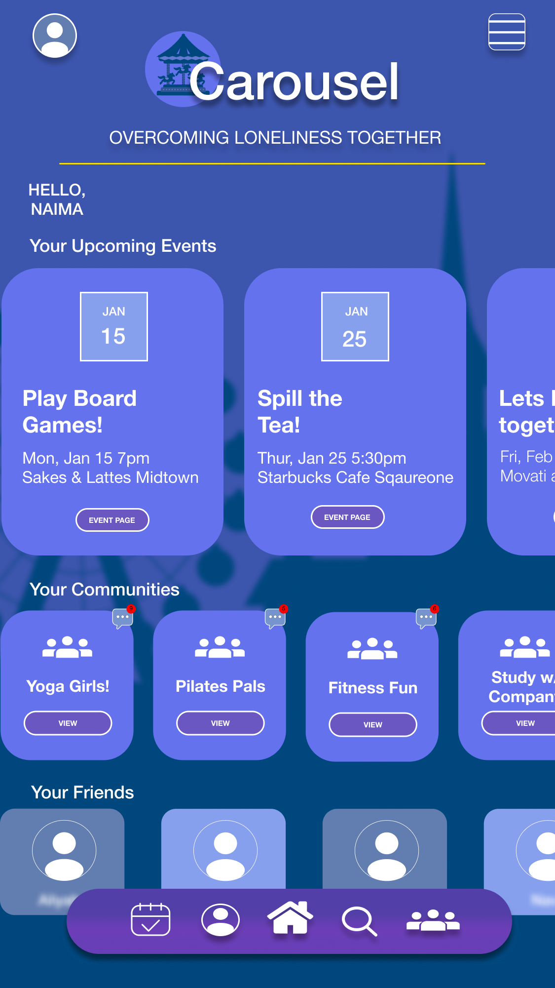 In reaction to these difficulties, Carousel appears as a ray of sunshine, providing a means of overcoming isolation and encouraging sincere relationships among adults. With the help of this community app, people will have a place to meet, exchange stories, and develop deep connections based on beliefs and similar interests. Carousel seeks to provide a space where people feel seen, heard, and valued via arranging community events, enabling virtual meetings, and cultivating a supportive environment. Through innovative features and a user-centric approach, Carousel seeks to break down barriers to social interaction and empower adults to forge authentic connections by using the power of technology for social good. Carousel shows how community building and working together can really help the challenges of loneliness.