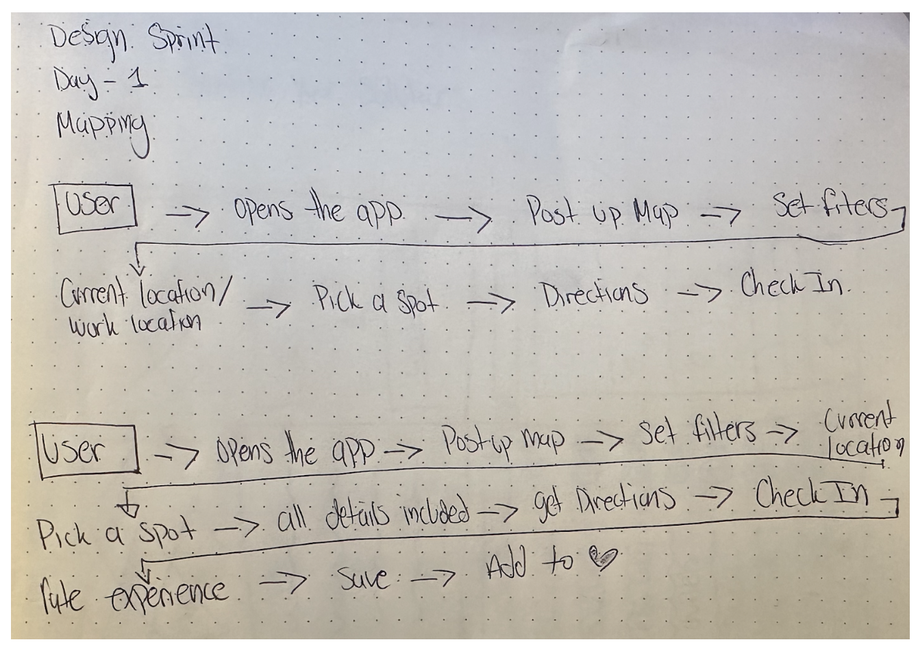 On the first day of the design sprint, my tasks included immersing myself in the problem, analyzing and synthesizing research findings, and outlining the key user flow for the PostUp app.
